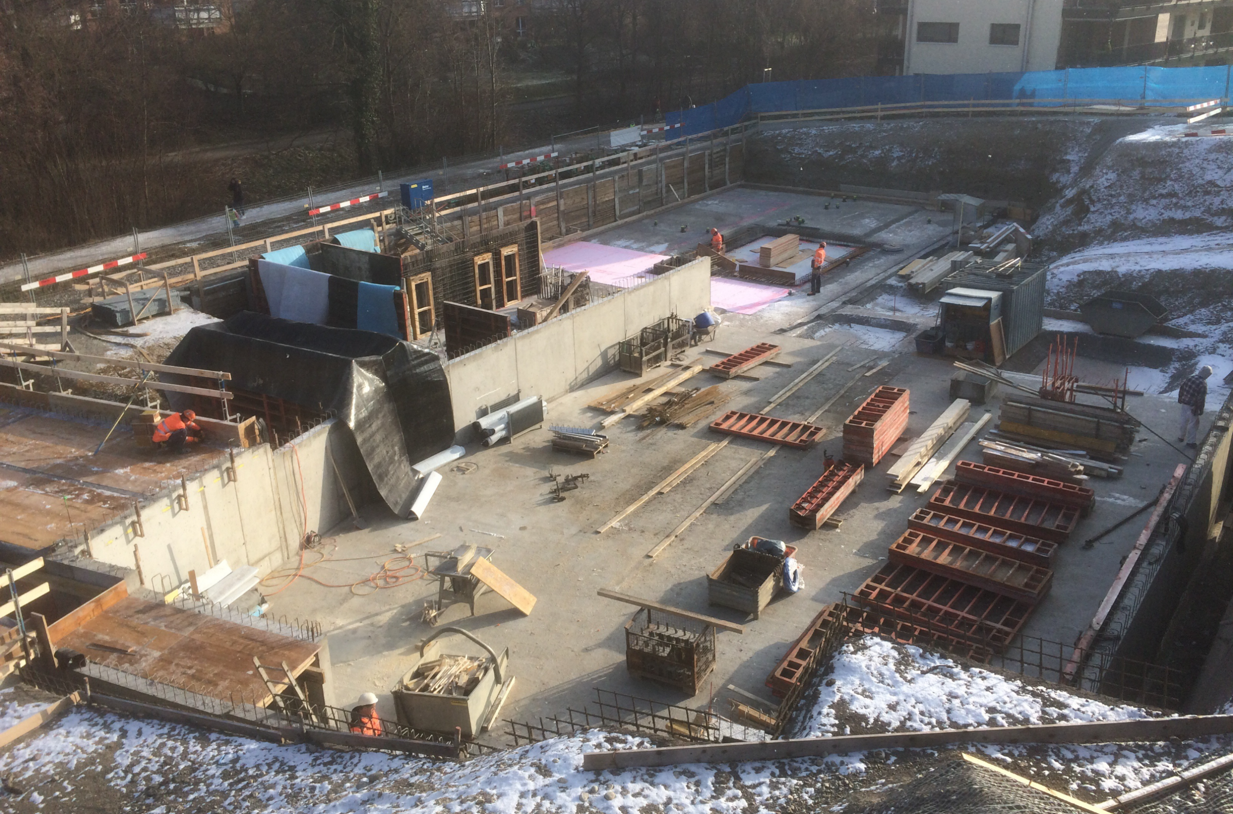 Besonderheiten: Dem der Baustelle gegenüberliegende "Kindergarten Weid" wurde während der Bauzeit ein besonderes Augenmerk geschenkt, sodass die Kindergärtler trotz Baustellenverkehr ohne Gefahr ihren Schulweg beschreiten konnten.