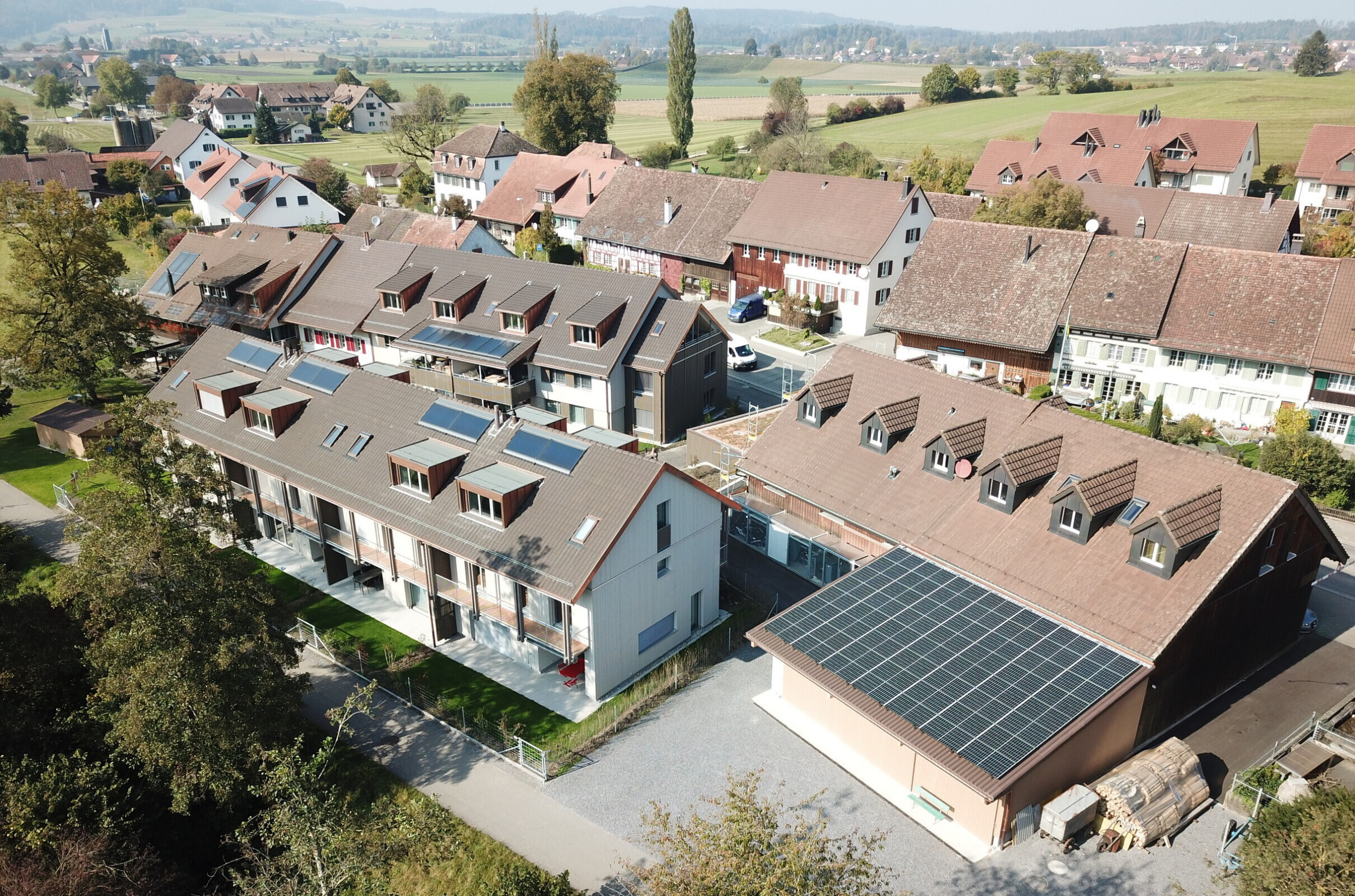 Bei der Wohnüberbauung 'Chrebsbach' in Unterohringen, die am gleichnamigen Bach liegt, wurden insgesamt 4 Reiheneinfamilienhäuser sowie 5 Eigentumswohnungen erstellt.